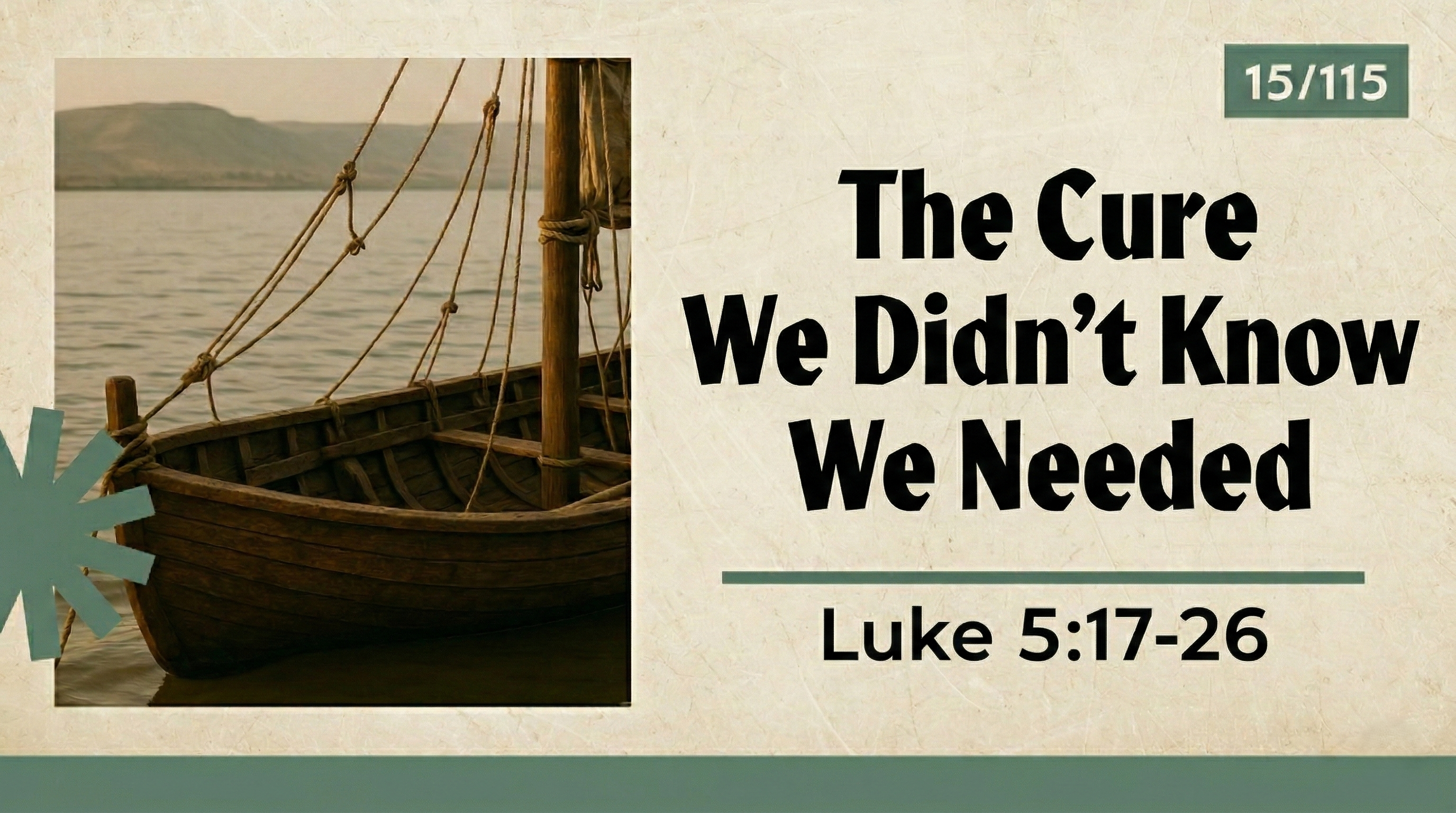 Luke 5:17-26 – Jesus healed a paralyzed man and forgave his sins. Our deepest need is not physical healing but spirit...